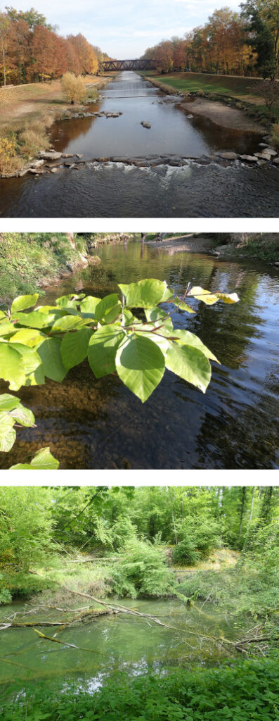 Man kennt die alten Zeichnungen von mäandrierenden Flussläufen, bei denen das Wasser graduell ins Land übergeht, Sumpflandschaften und ausgedehnte Auenwälder existieren und jede neue Zeichnung wieder anders aussähe.